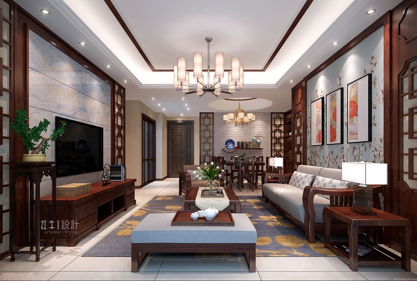 本案新中式風(fēng)格,繼承明清時(shí)期家居理念的精華,將其中的經(jīng)典元素提煉并加以豐富,同時(shí)改變?cè)锌臻g布局中等級(jí)、尊卑等封建思想,給傳統(tǒng)家居文化注入了新的氣息