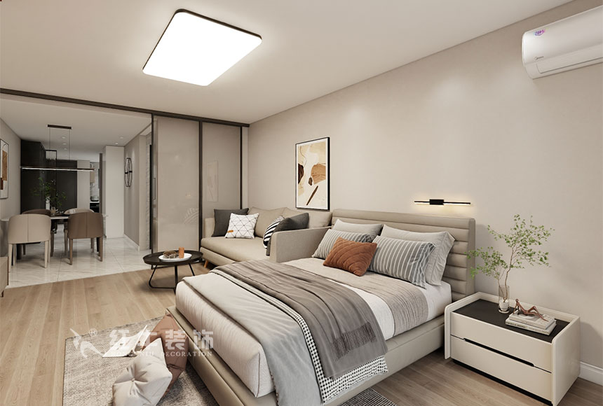 主臥室簡單顯主人家的生活細致,閱讀燈的點綴更添氛圍,整體的風格及色彩的運用都是使空間更顯舒適輕松安靜的氛圍,放松、愉悅。